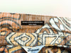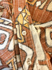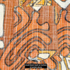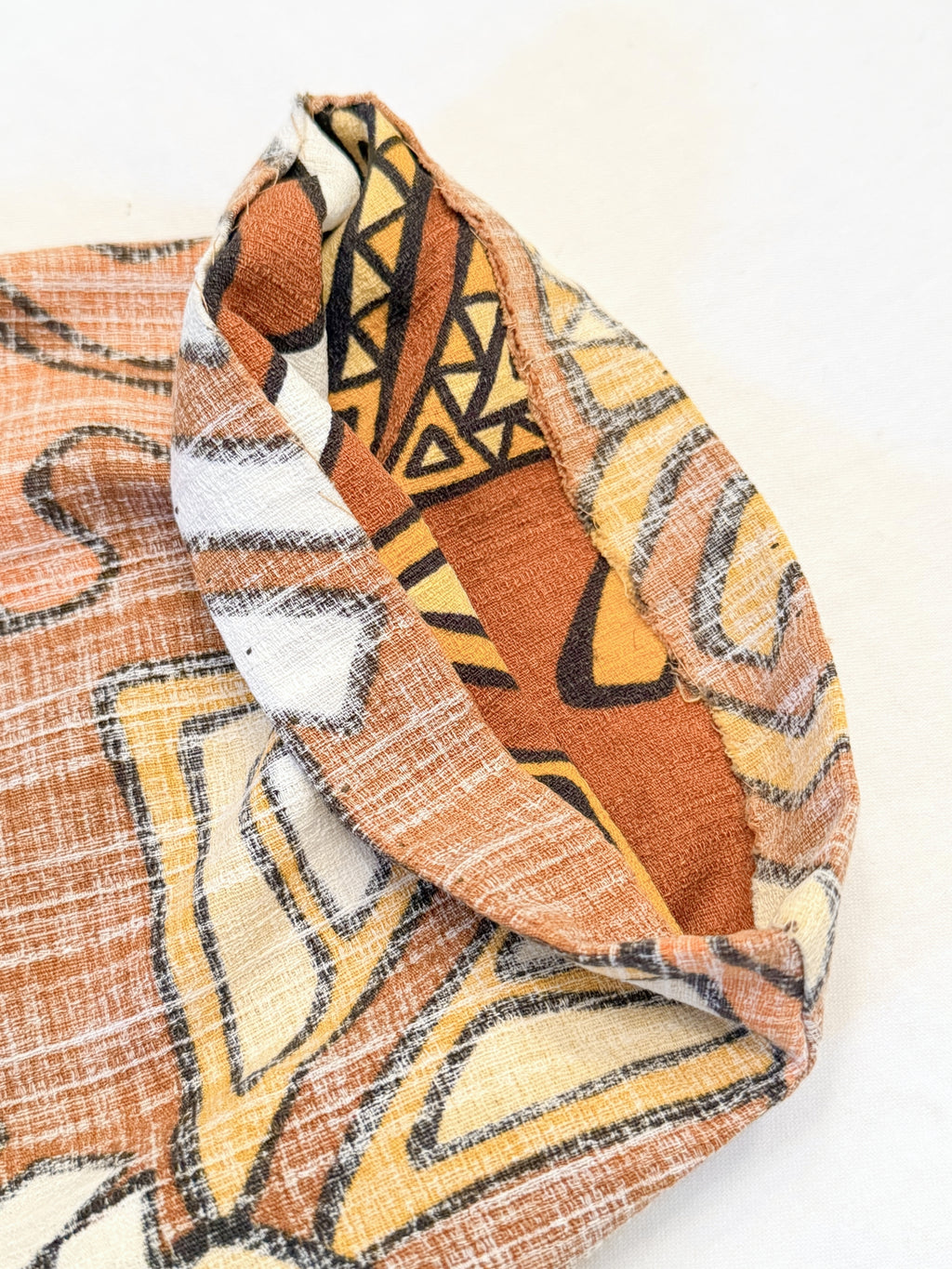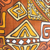 Cotton barkcloth fabric in rust, white, orange, black print.