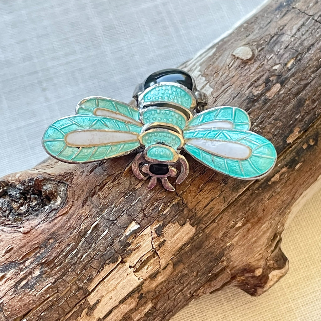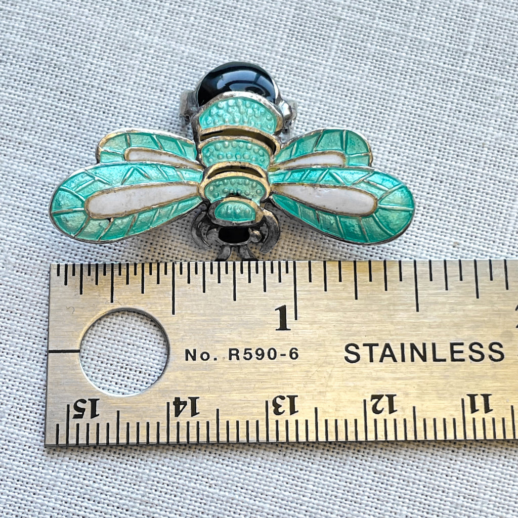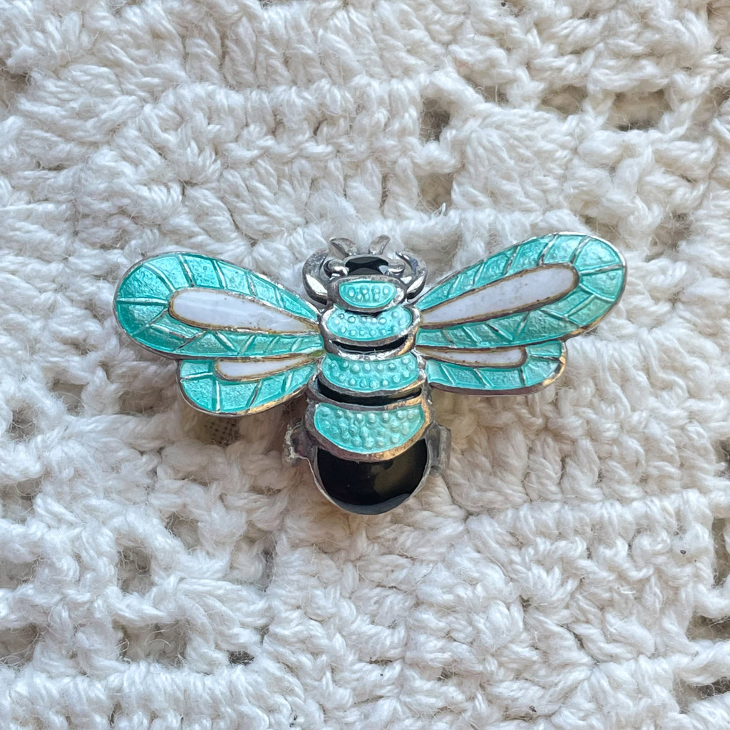 Charming Margot De Taxco signed/hallmarked enamel sterling silver BEE pin/brooch.