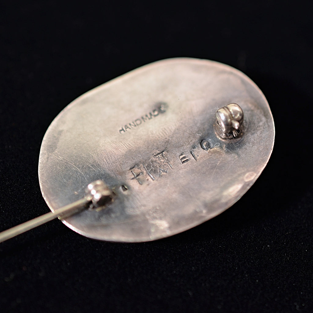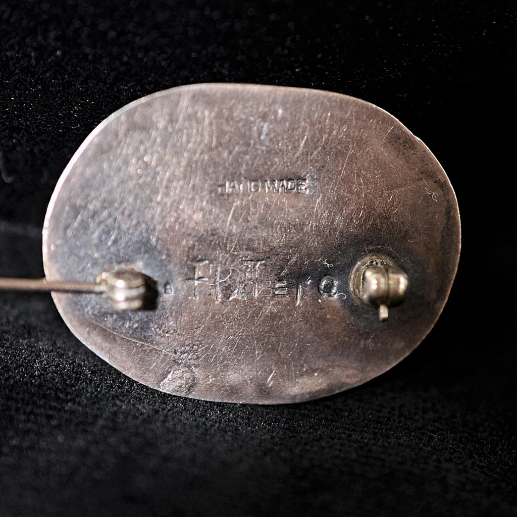 The piece is signed by Platero, it is attributed to Ramone Platero, a Navajo silversmith/artisan.