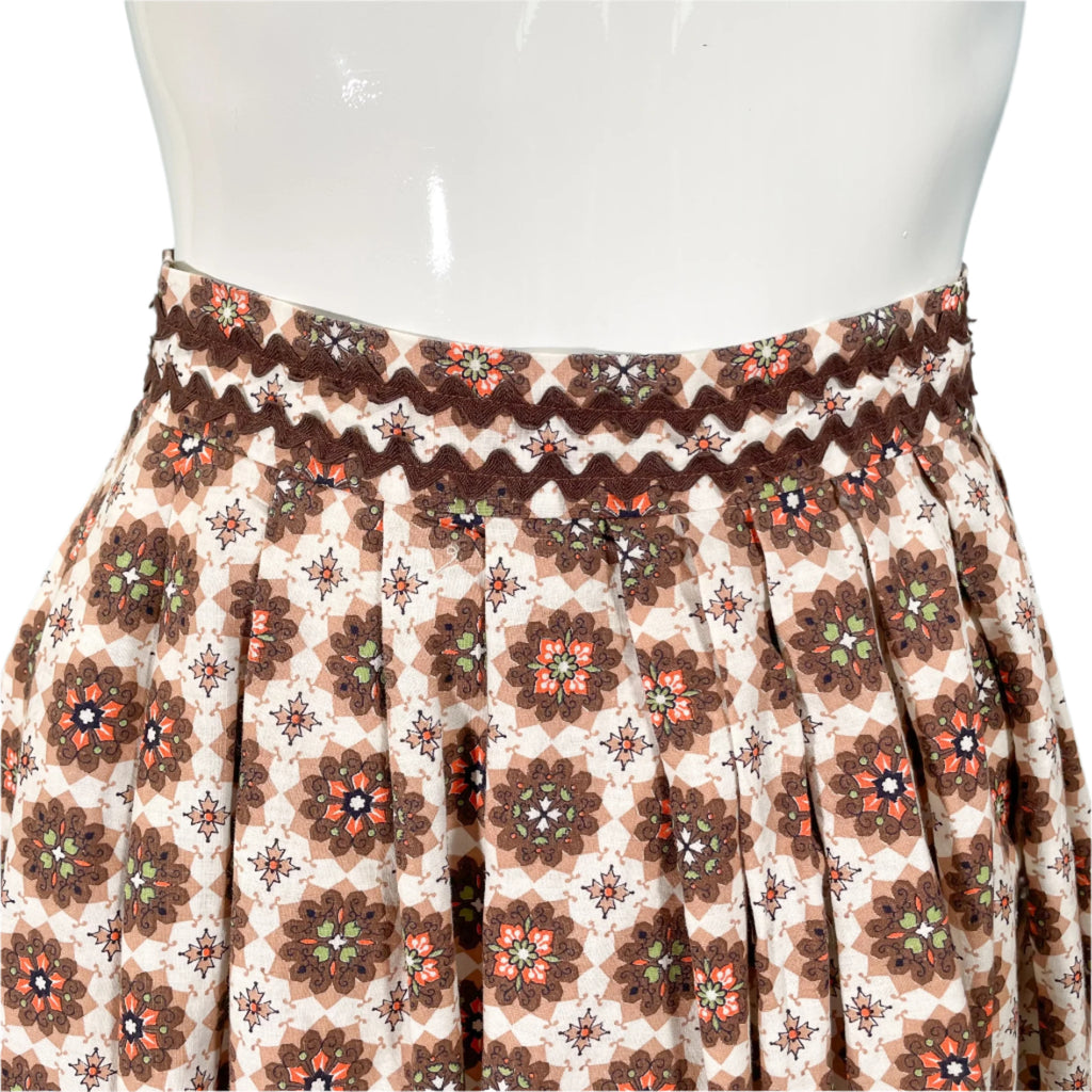 Skirt with fitted waistband, rickrack trim on the waistband & hemline.