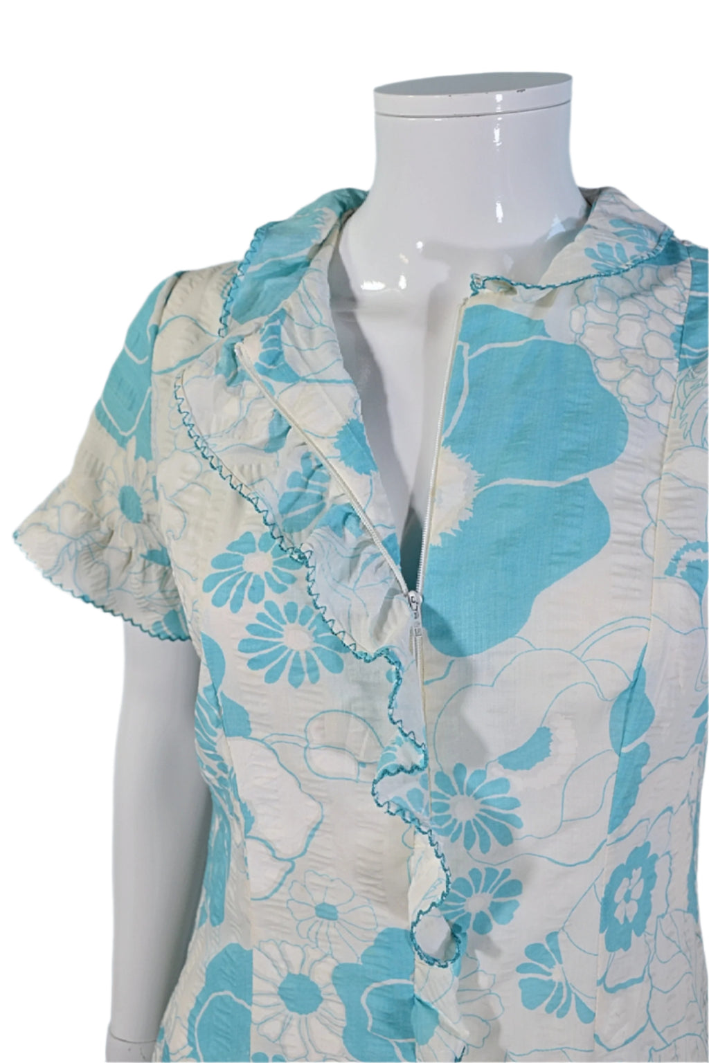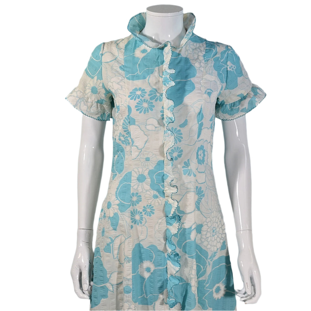 Lightweight cotton seersucker with pretty ruffle accents.