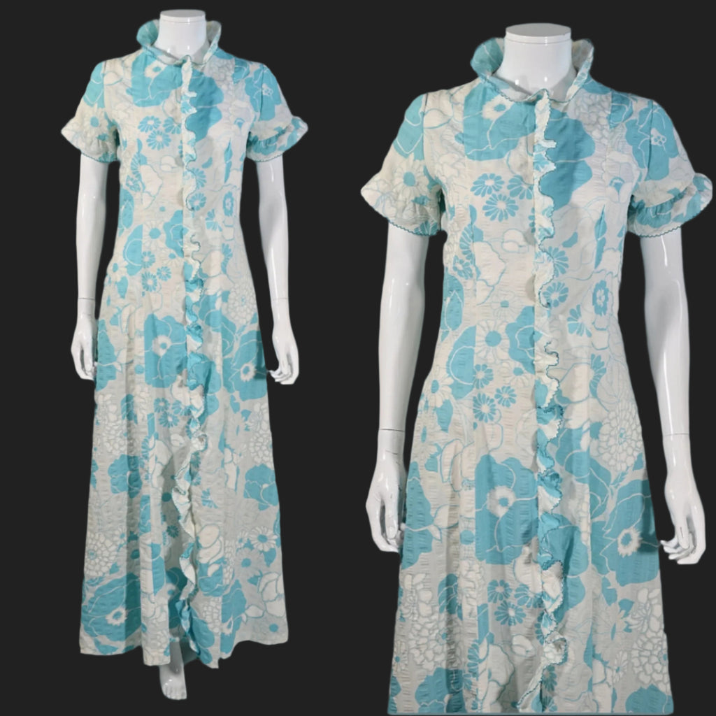 Adorable blue and white floral print dressing gown.