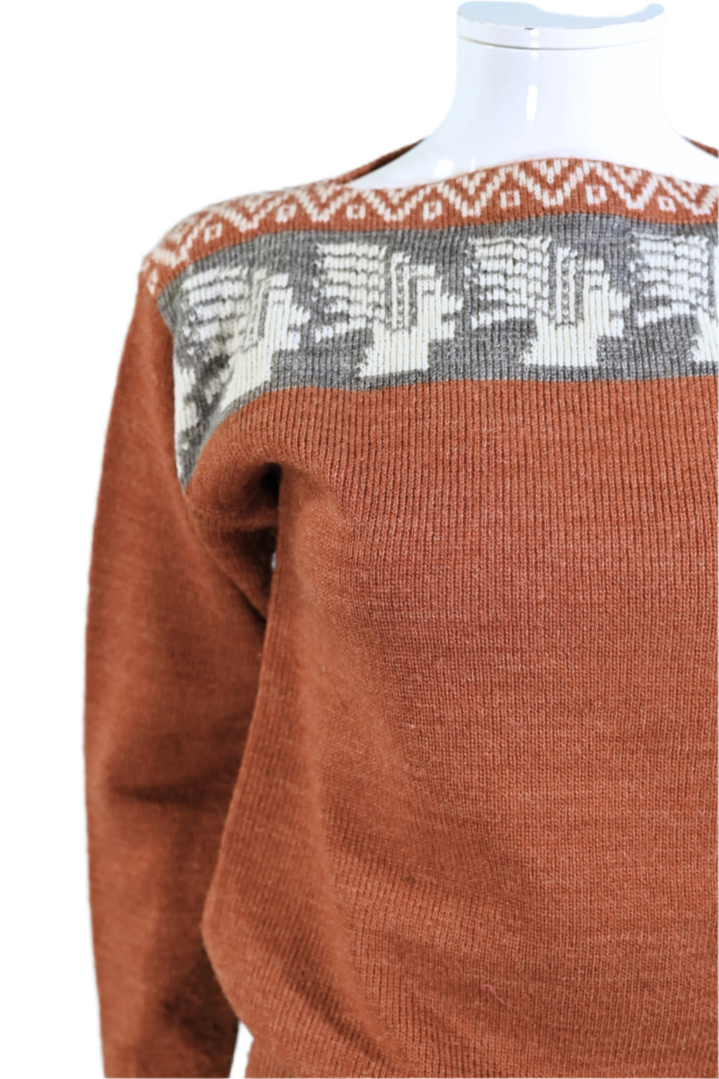 Vintage 70s pullover sweater with tribal/ethnic pattern on the neckline.