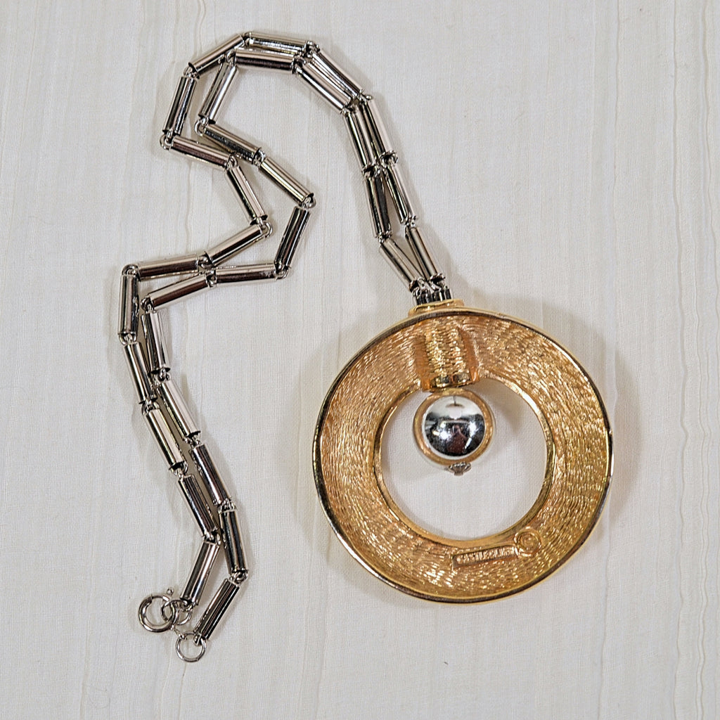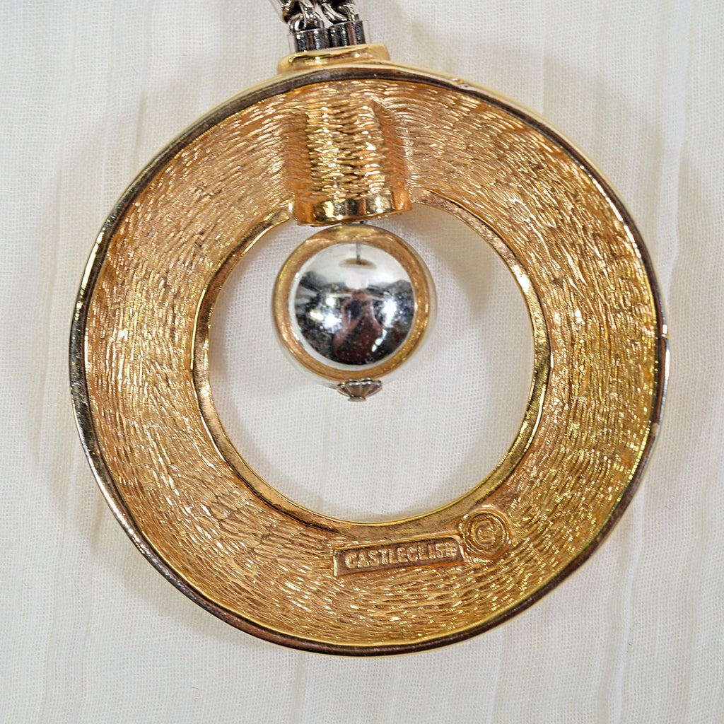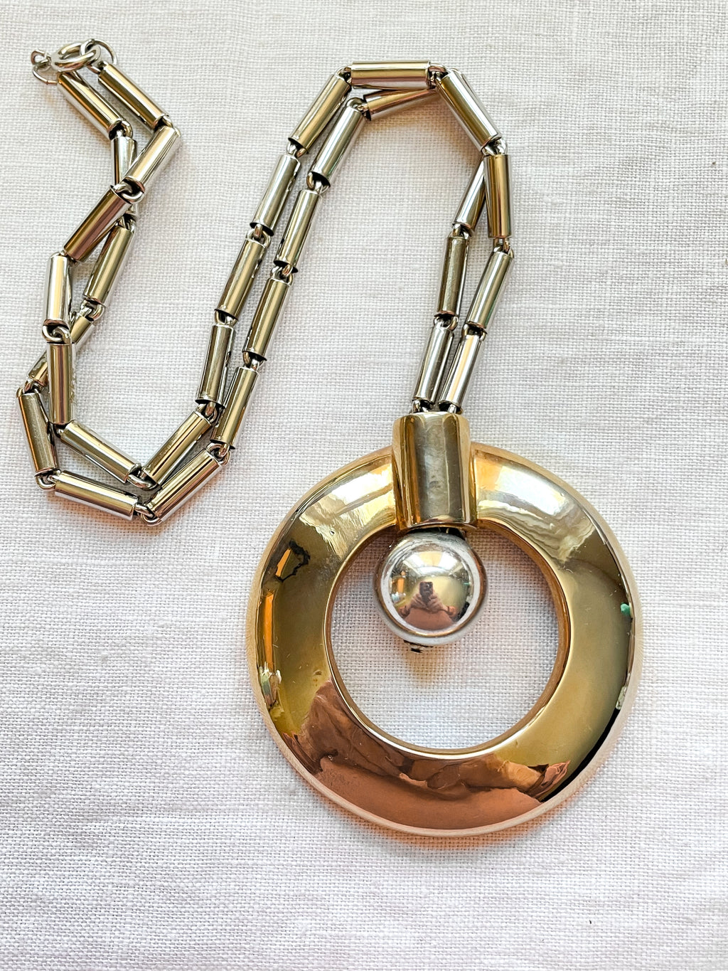 Vintage shiny metal Mod pendant necklace from Castlecliff.
