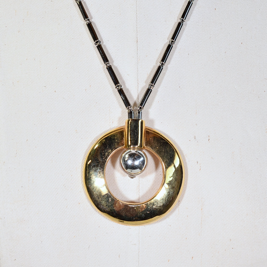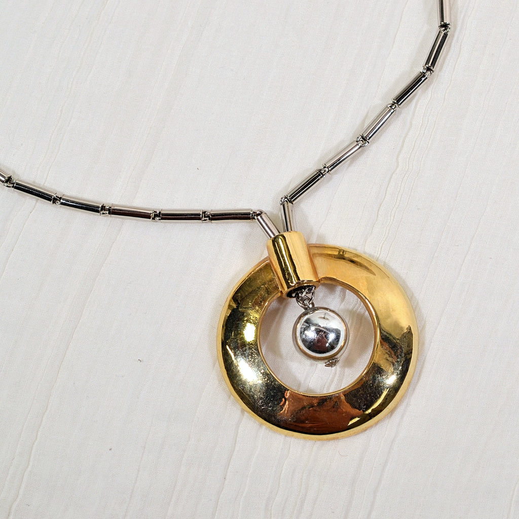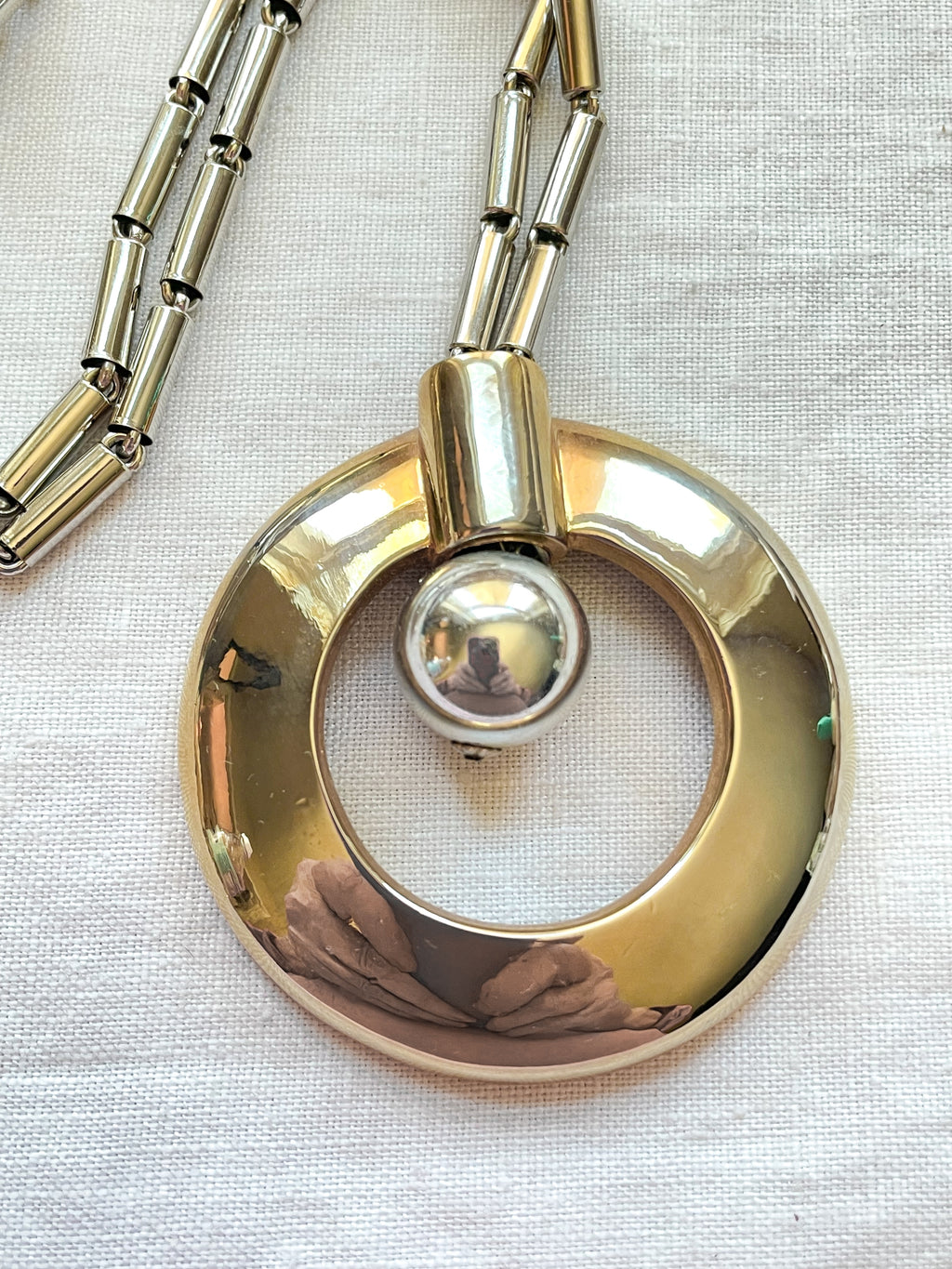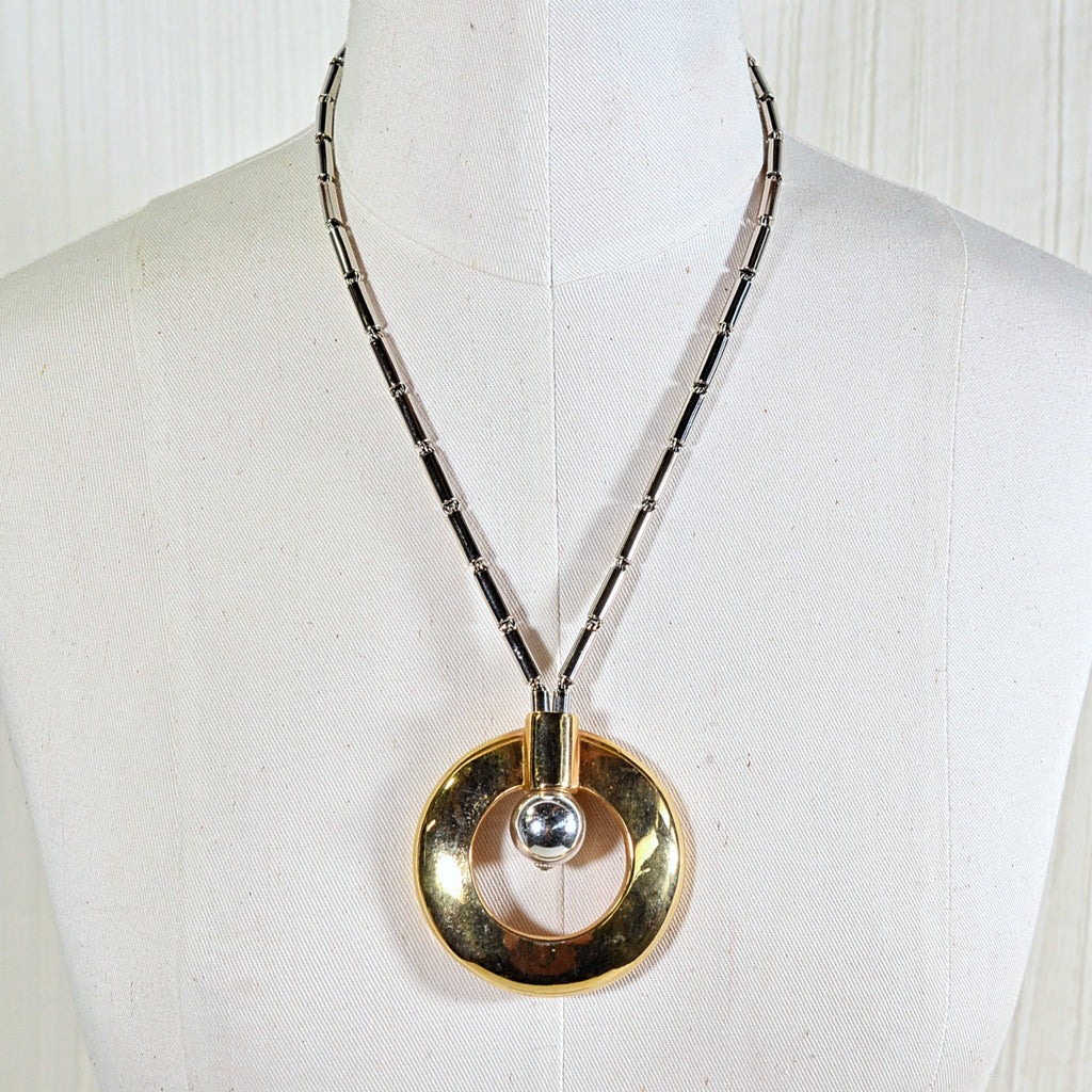 Vintage shiny metal Mod pendant necklace from Castlecliff.