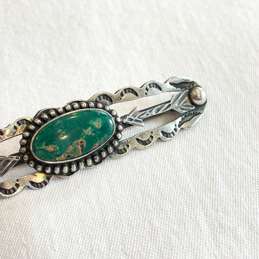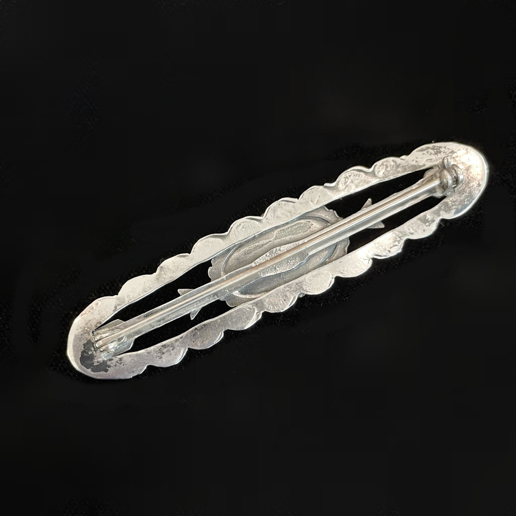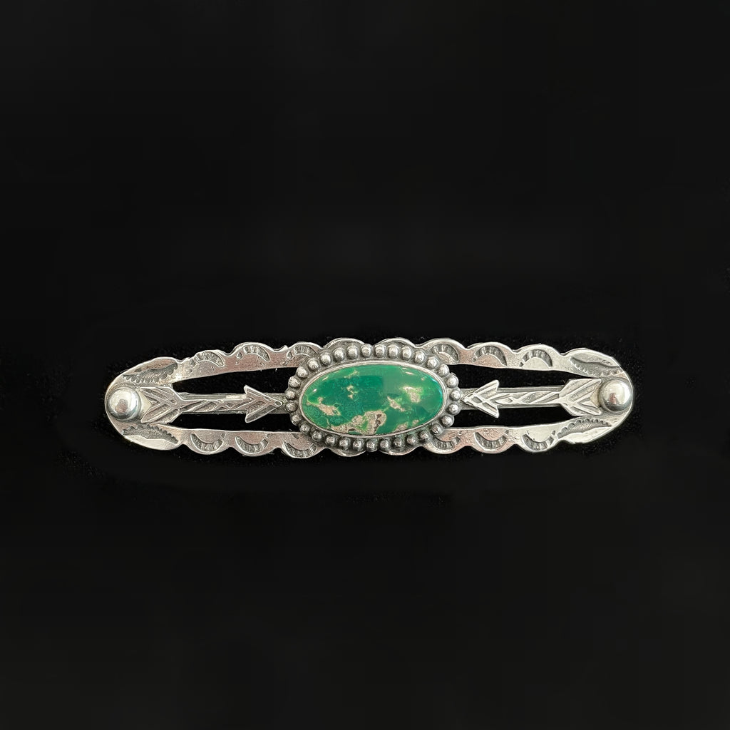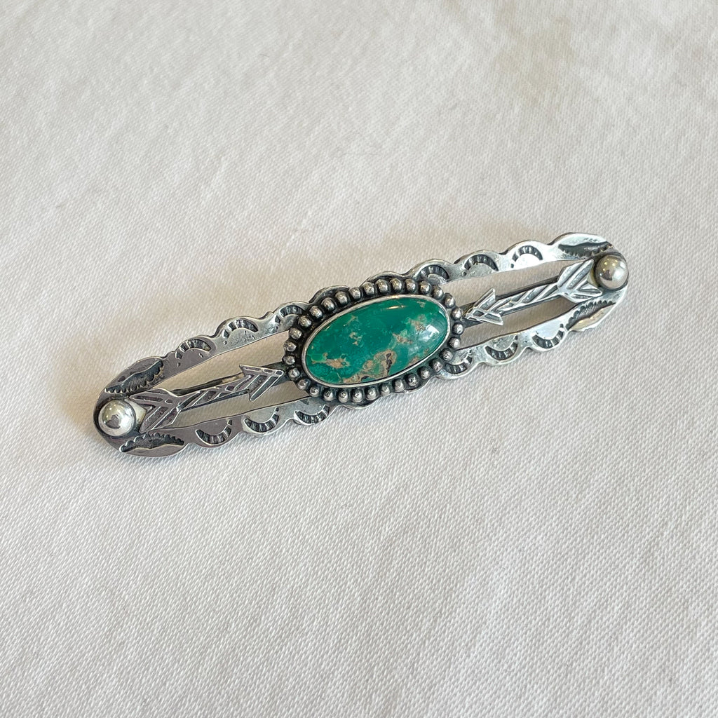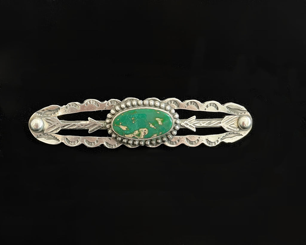 Brooch with 2 stamped arrows, raised balls and stamped edges.