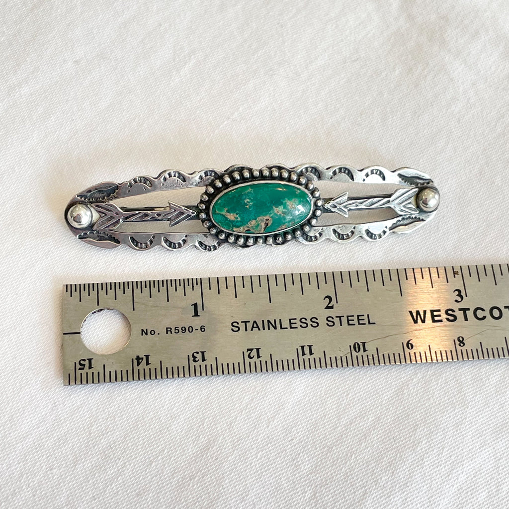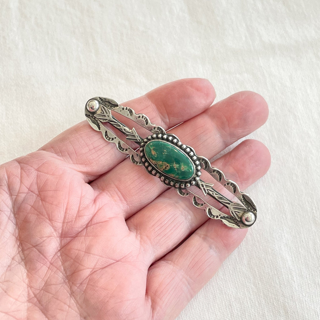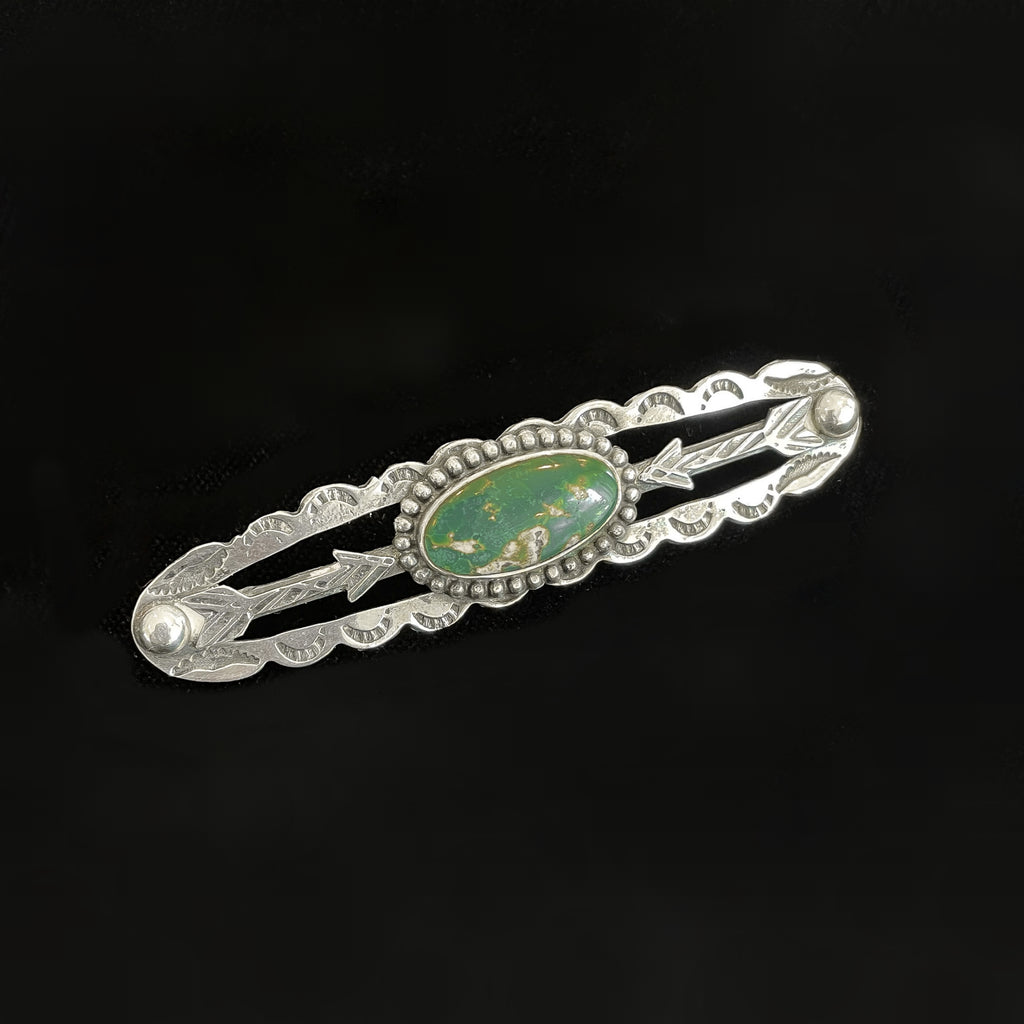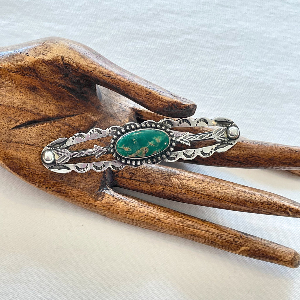 Brooch with 2 stamped arrows, raised balls and stamped edges.