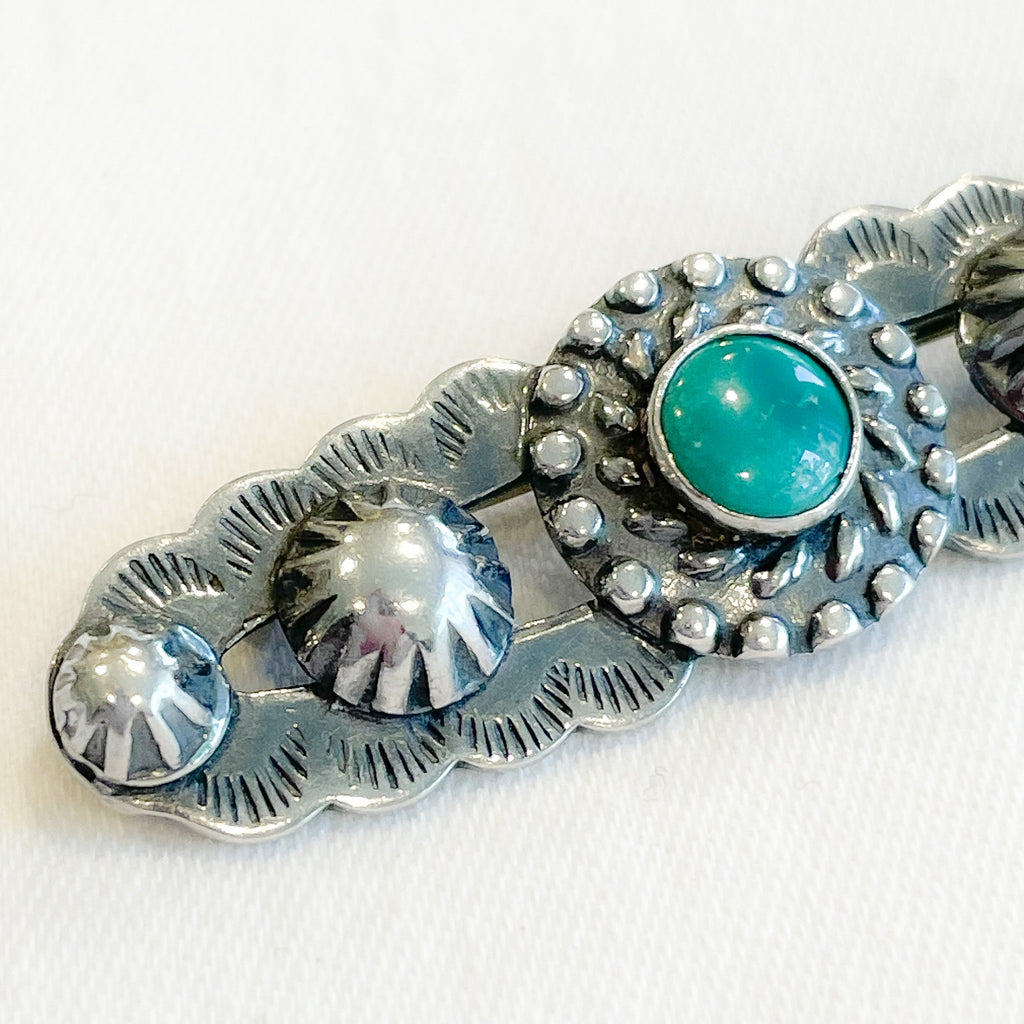 Vintage Fred Harvey Era sterling silver turquoise brooch.