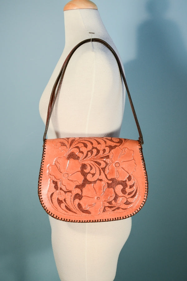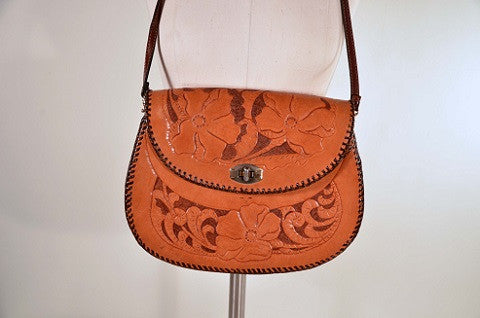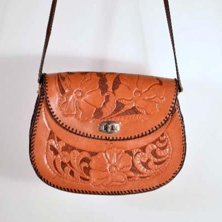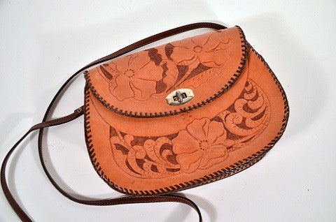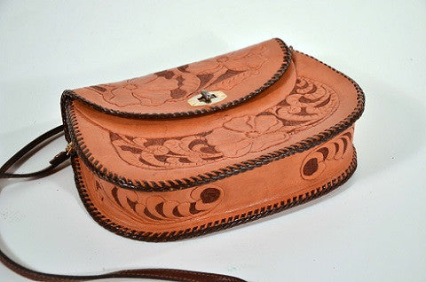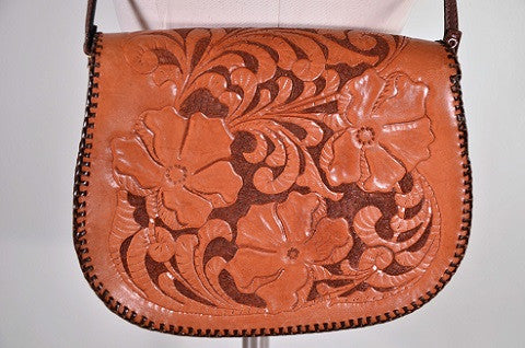 Beautiful hand tooled leather shoulder cross-over handbag.