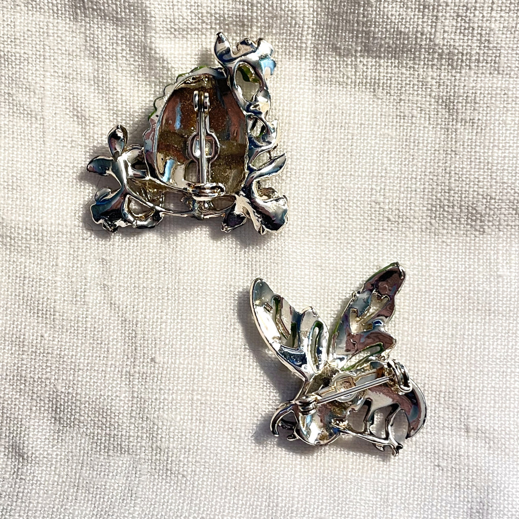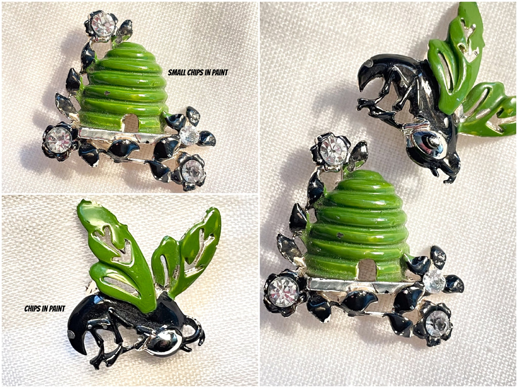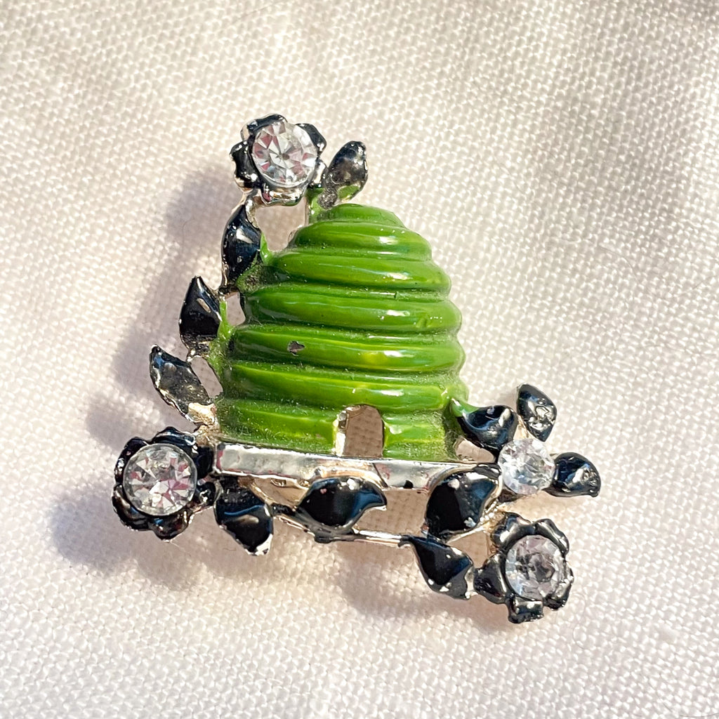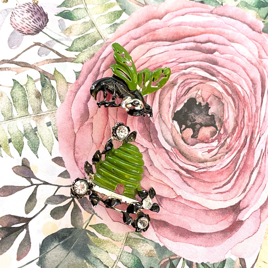 Vintage MCM 2-piece set bee and beehive brooch set.