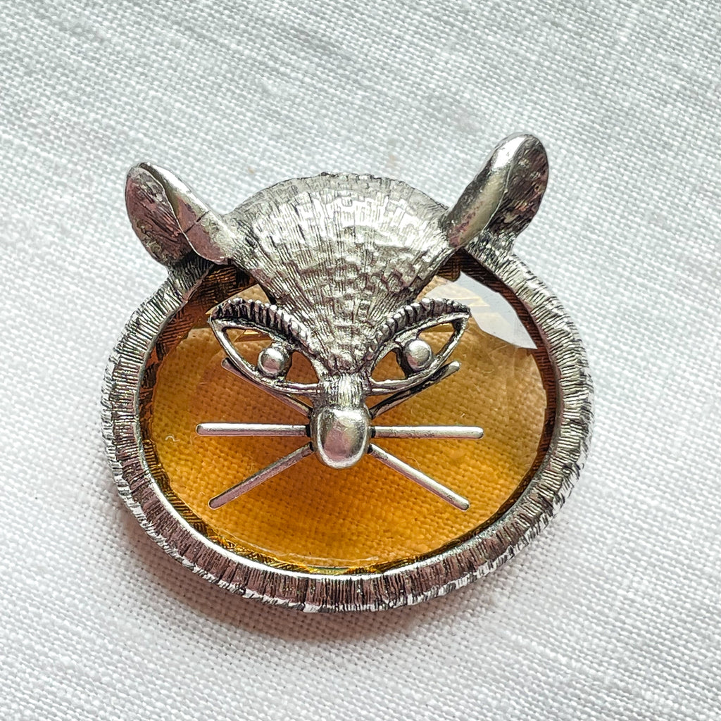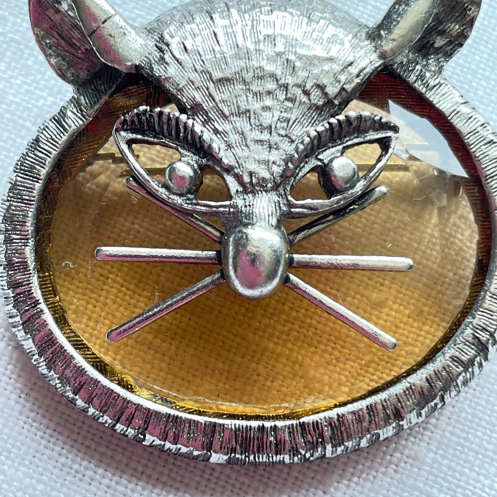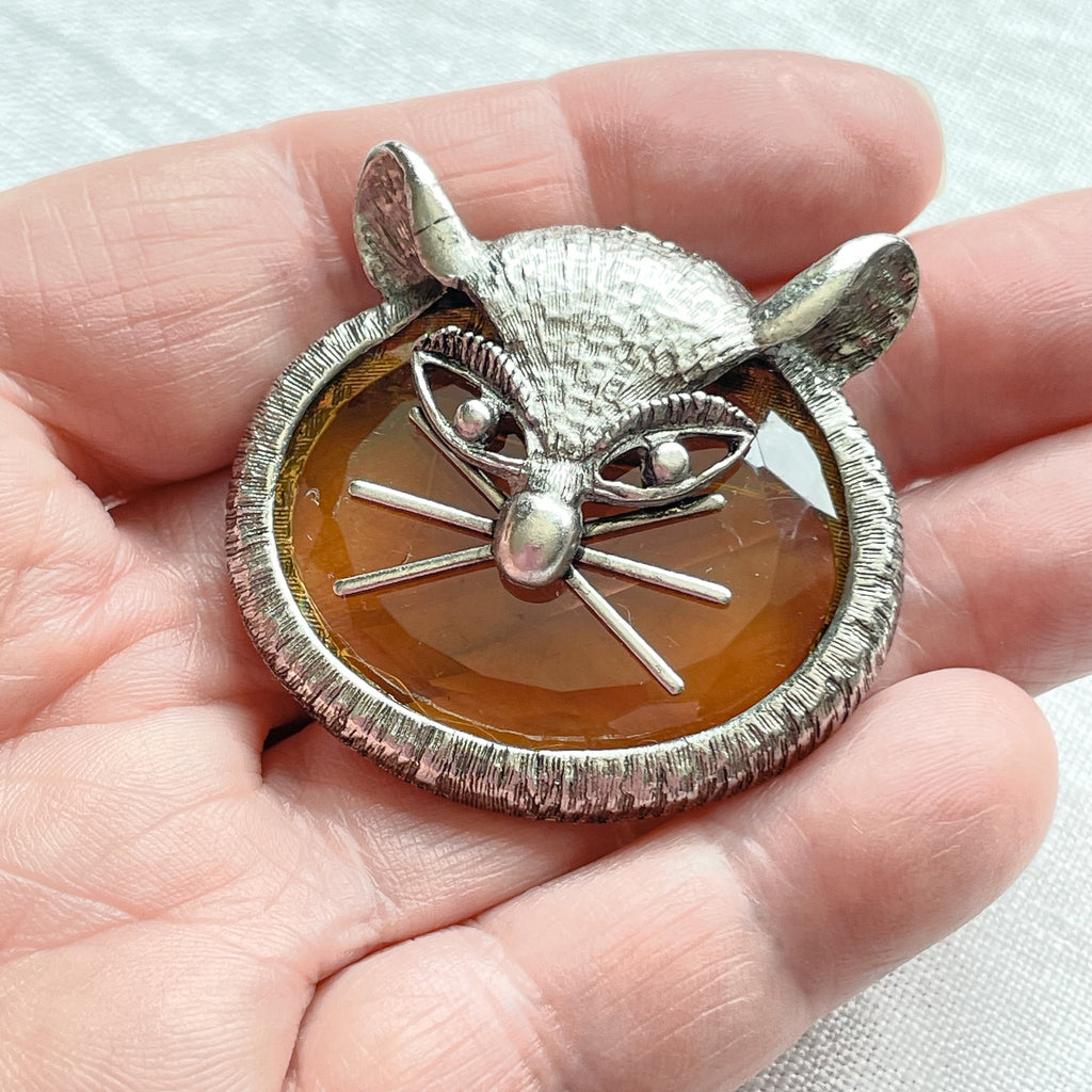 Vintage MCM cat face brooch/pendant costume jewelry.