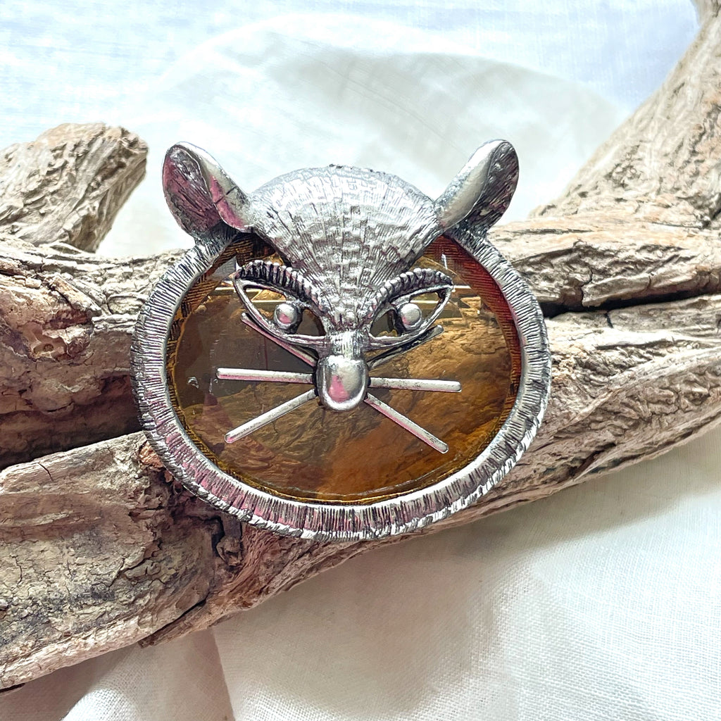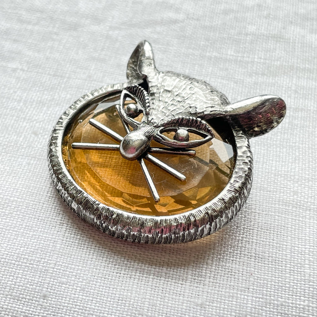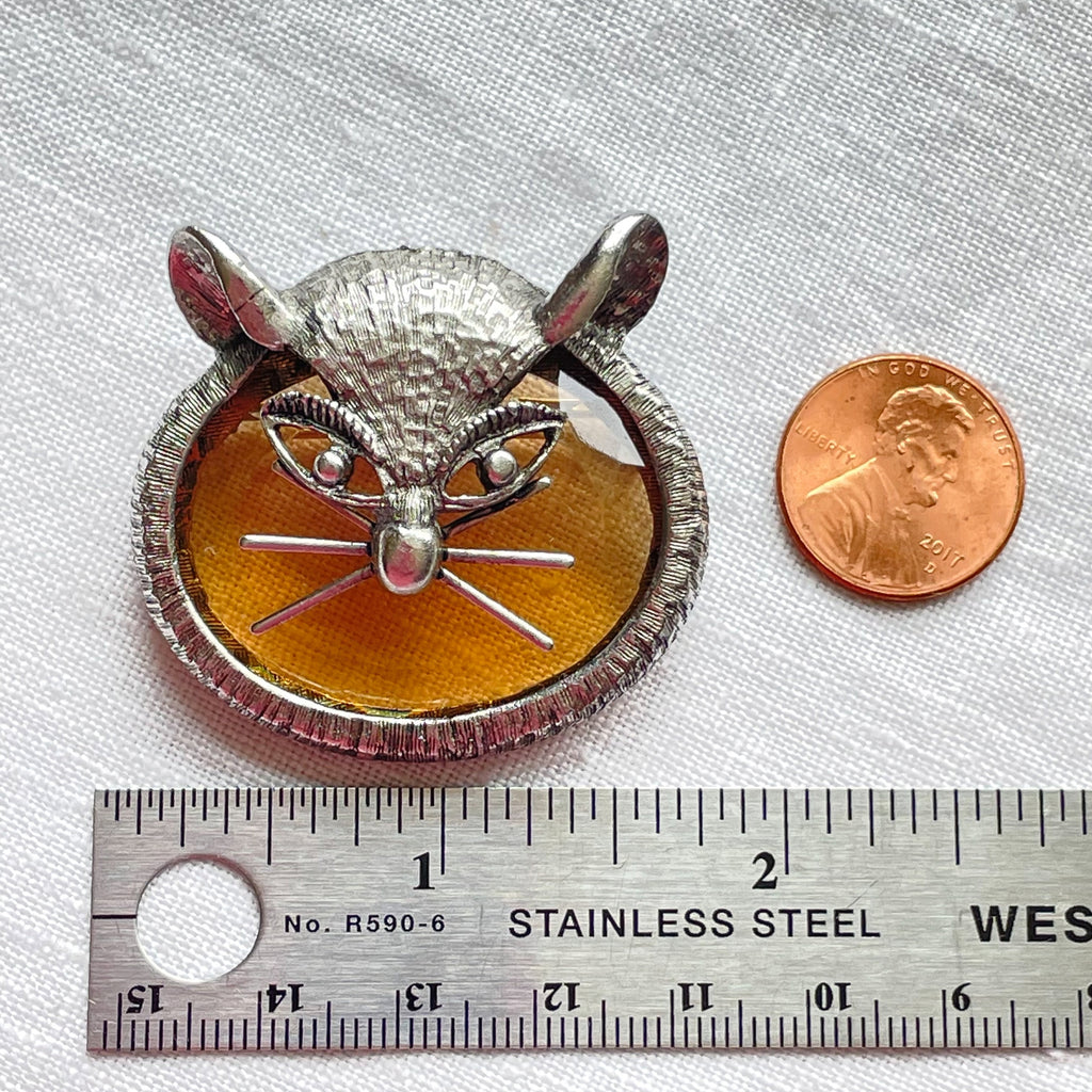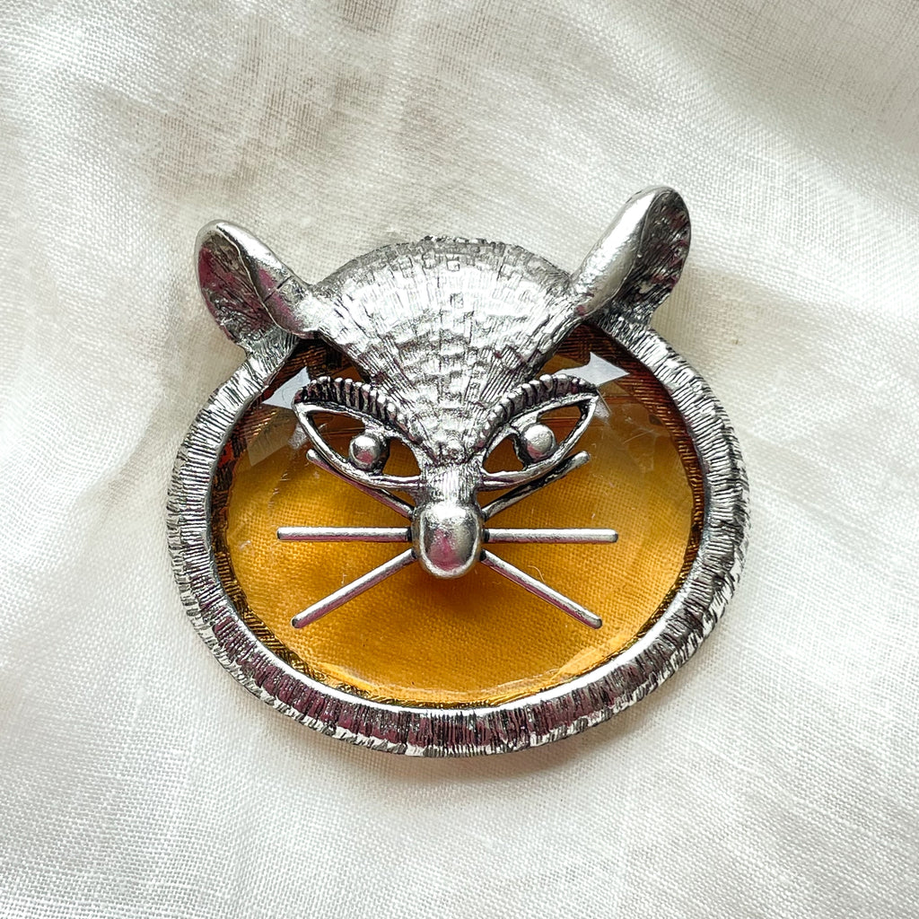 Vintage MCM cat face brooch/pendant costume jewelry.