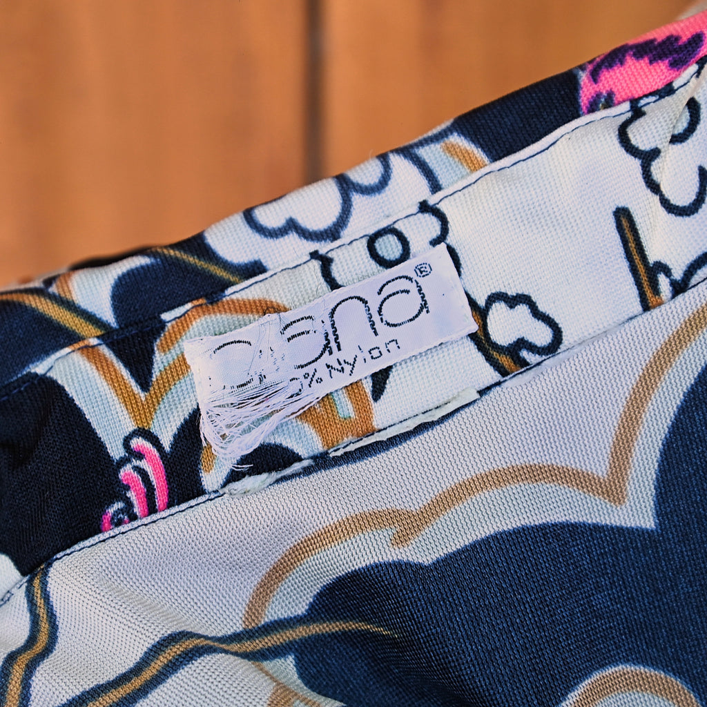 Groovy 70s Nylon Disco shirt with birds and flowers.