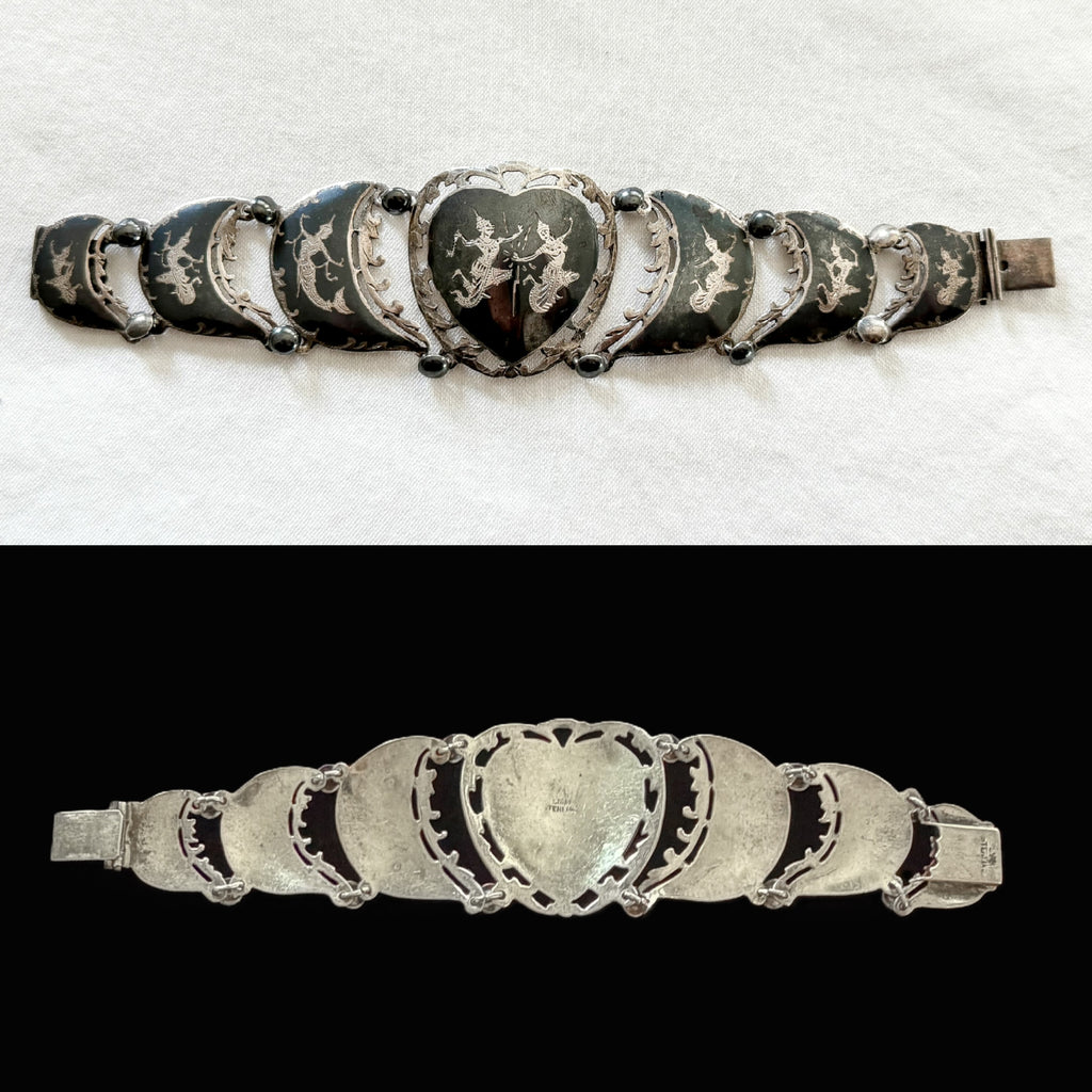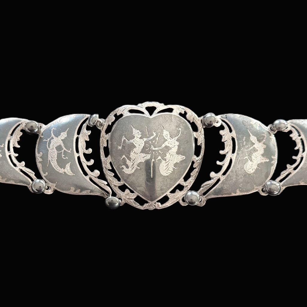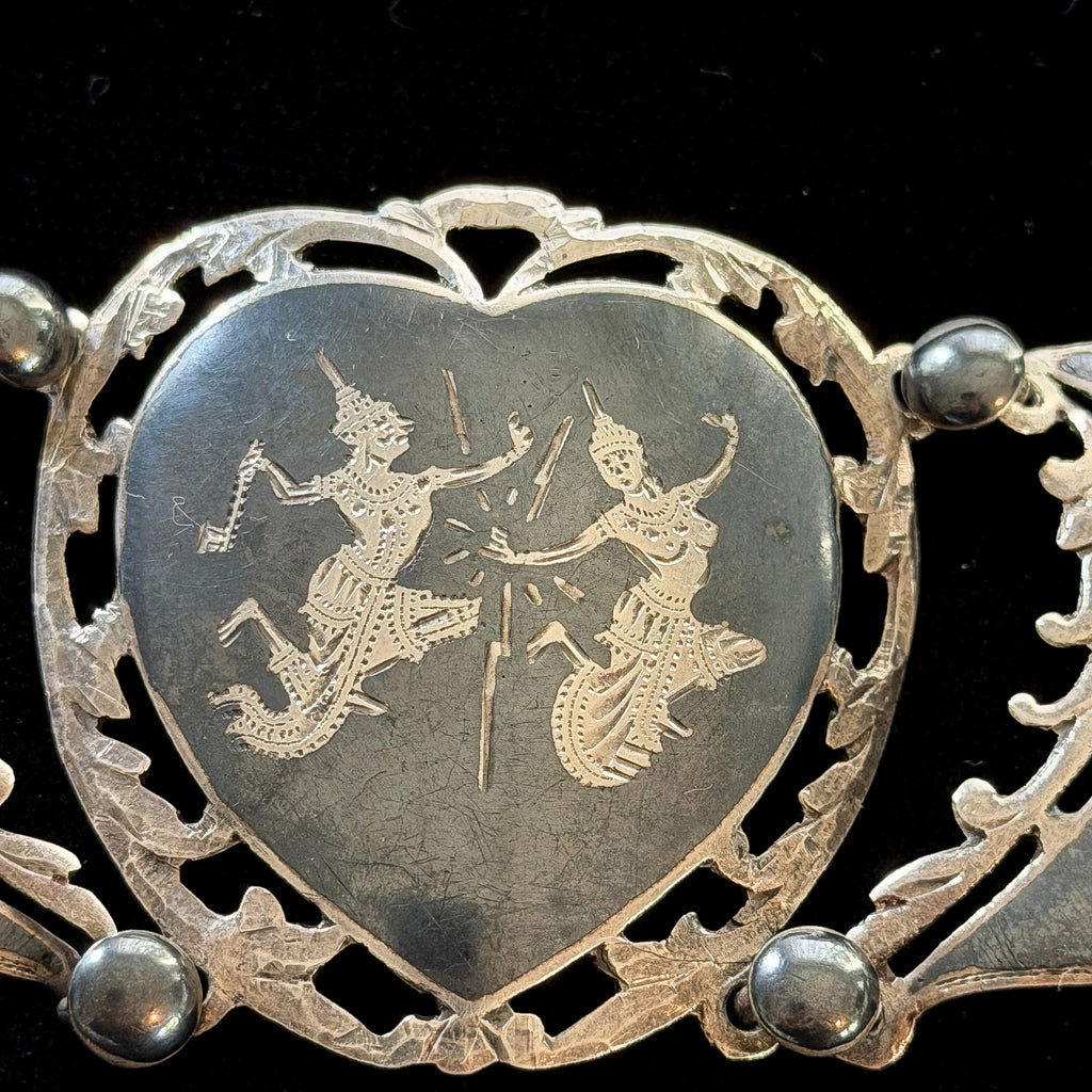 Vintage sterling silver & black oxidized etched Siam bracelet.